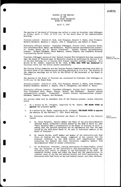 Meeting minutes, April 3, 1992