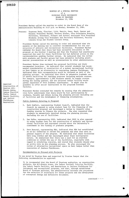 Meeting minutes, November 12, 1984