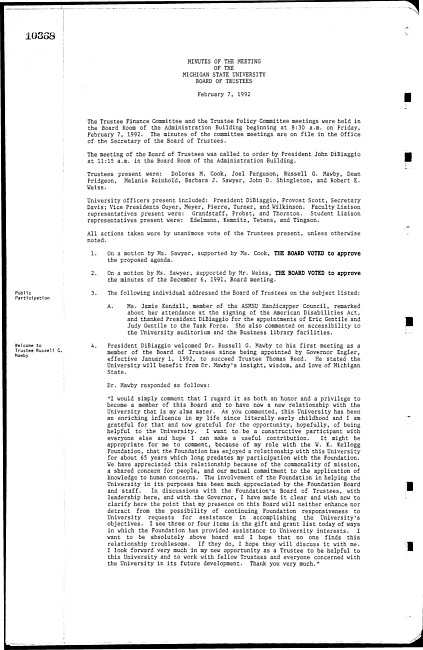 Meeting minutes, February 07, 1992
