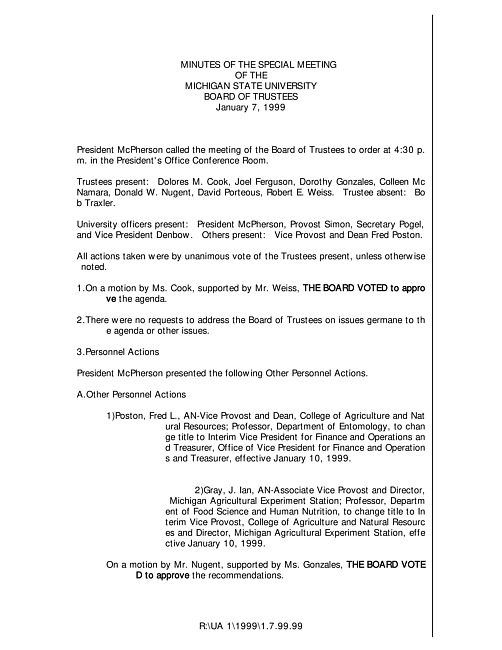 Meeting minutes, January 07, 1999