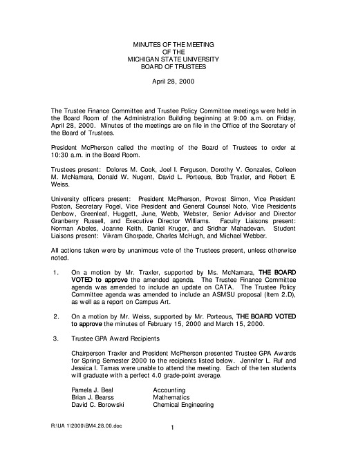 Meeting Minutes of the Board of Trustees (UA 1)