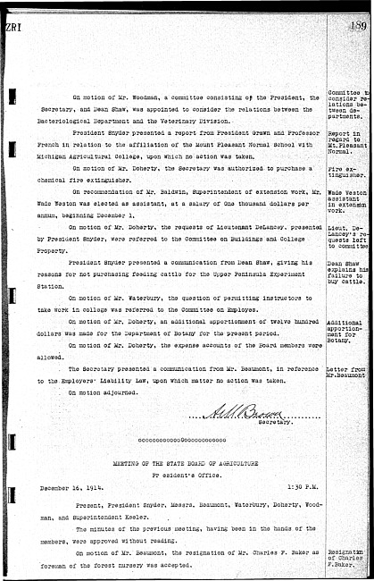 Meeting minutes, December 16, 1914