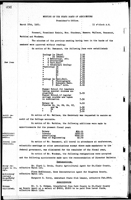 Meeting minutes, march 16, 1921