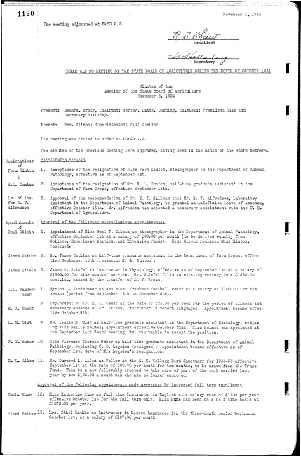 Meeting minutes,November 3, 1934