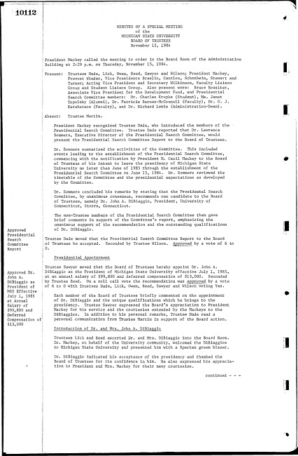 Meeting minutes, November 15, 1984