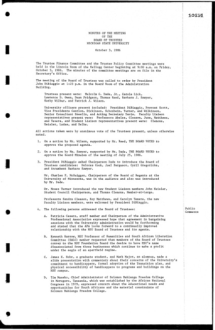 Meeting minutes, October 3, 1986