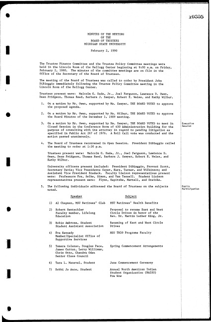 Meeting minutes, February 02, 1990