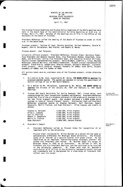 Meeting minutes, April 11, 1997