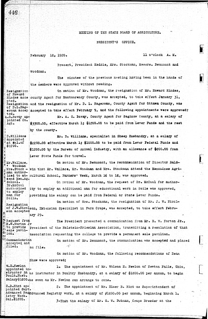 Meeting minutes, February 18, 1920