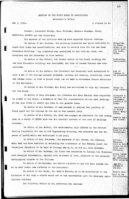 Meeting minutes, May 1, 1922