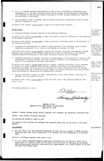 Meeting minutes, February 21, 1930