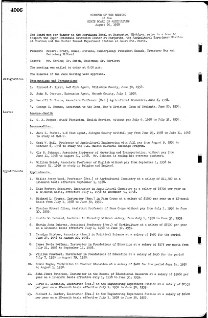 Meeting minutes, August 20, 1958