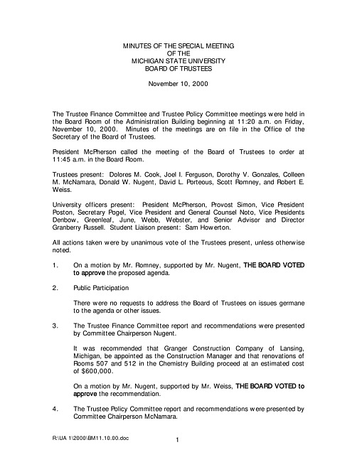 Meeting Minutes of the Board of Trustees (UA 1)