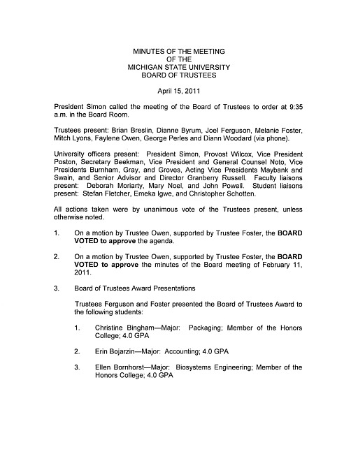Meeting minutes, April 15, 2011