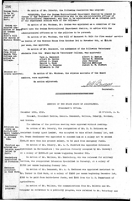 Meeting minutes, December 18, 1918