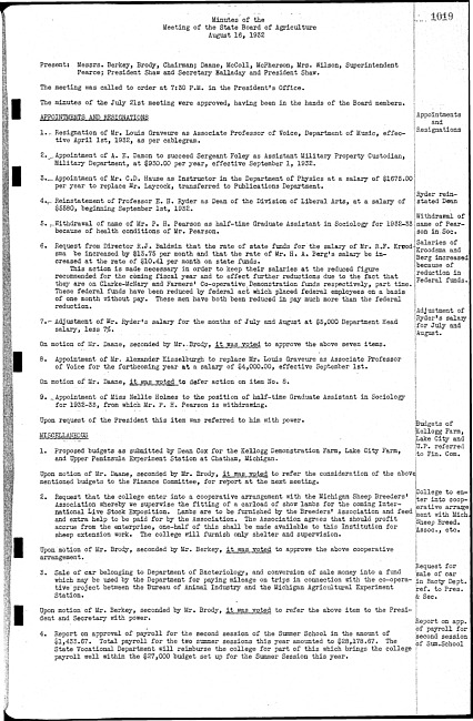 Meeting minutes, August 16, 1932
