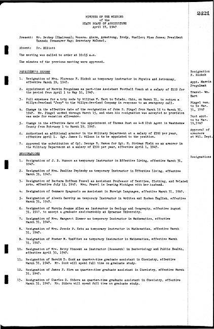 Meeting minutes, April 17, 1947