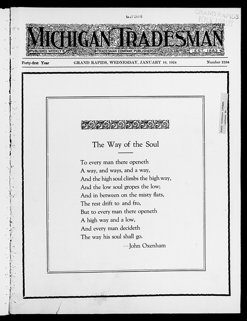 Michigan tradesman. Vol. 41 no. 2104 (1924 January 16)