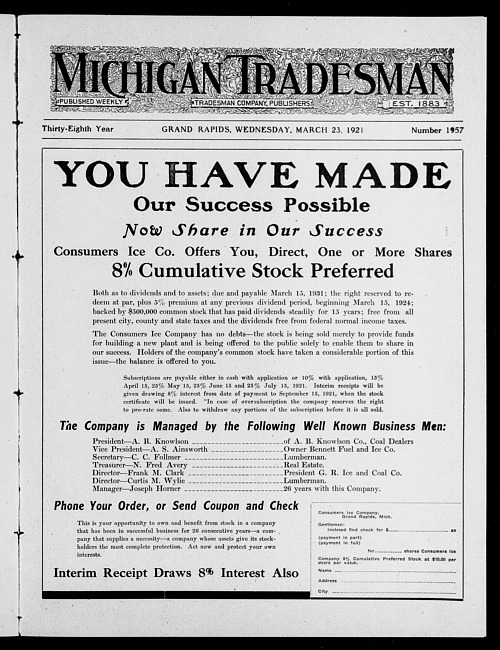 Michigan tradesman. Vol. 38 no. 1957 (1921 March 23)