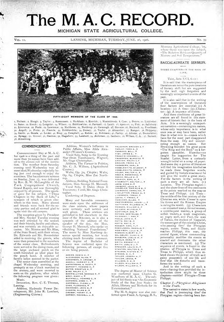 The M.A.C. record. Vol. 11 no. 39 (1906 June 26)