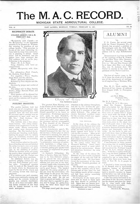 The M.A.C. record. Vol. 16 no. 22 (1911 February 21)