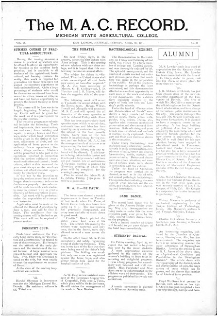 The M.A.C. record. Vol. 16 no. 31 (1911 April 25)