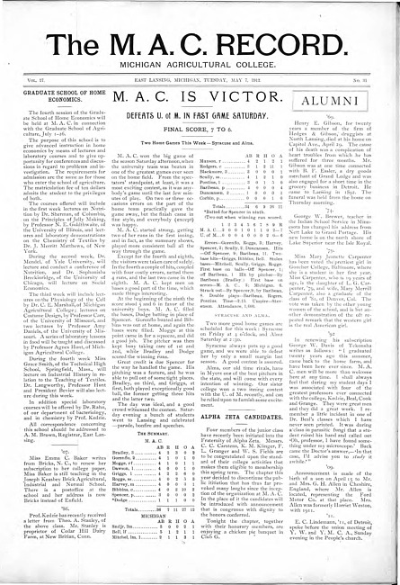 The M.A.C. record. Vol. 17 no. 31 (1912 May 7)