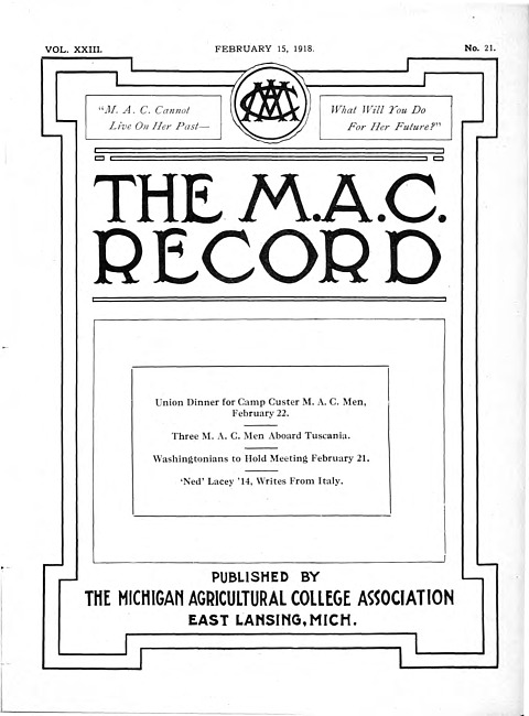 The M.A.C. record. Vol. 23 no. 21 (1918 February 15)