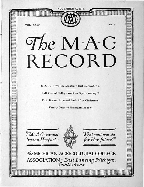The M.A.C. record. Vol. 24 no. 9 (1918 November 29)
