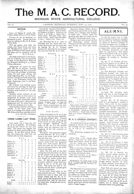 The M.A.C. record. Vol. 11 no. 36 (1906 May 29)