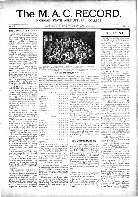 The M.A.C. record. Vol. 8 no. 30 (1903 April 21)