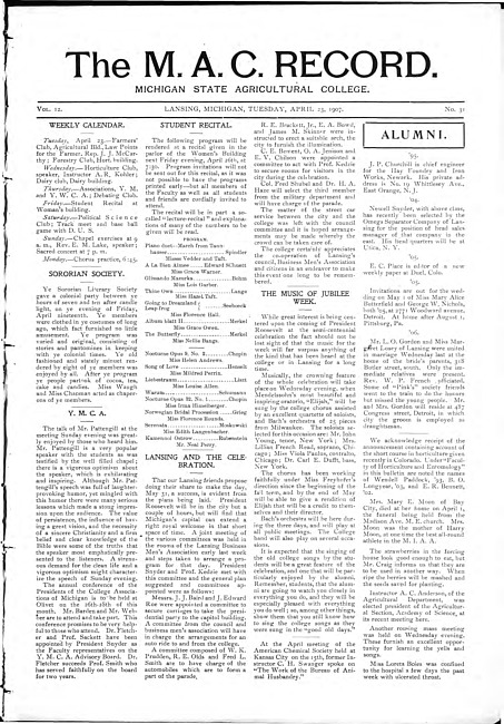 The M.A.C. record. Vol. 12 no. 31 (1907 April 23)