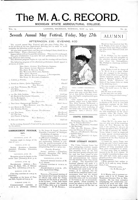 The M.A.C. record. Vol. 15 no. 33 (1910 May 24)