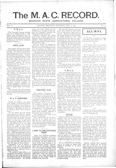 The M.A.C. record. Vol. 14 no. 13 (1908 December 15)