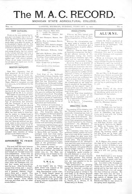 The M.A.C. record. Vol. 12 no. 22 (1907 February 19)