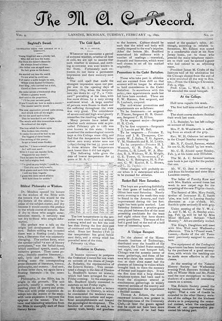 The M.A.C. record. Vol. 4 no. 22 (1899 February 14)