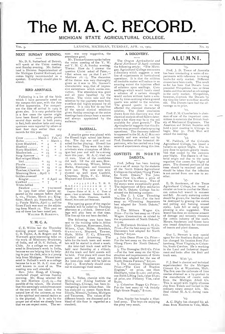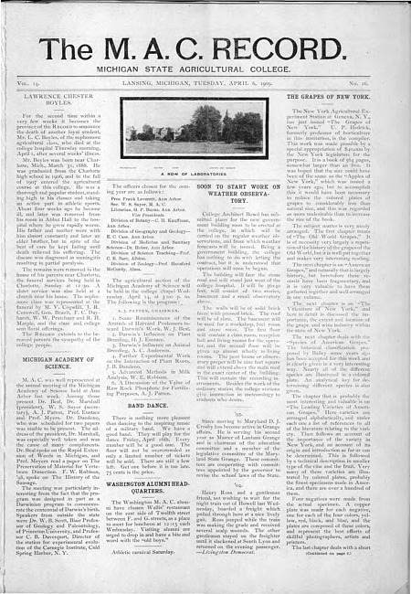 The M.A.C. record. Vol. 14 no. 26 (1909 April 6)