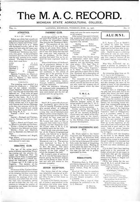 The M.A.C. record. Vol. 11 no. 26 (1906 March 20)