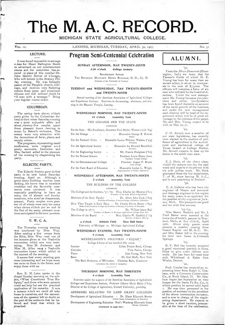 The M.A.C. record. Vol. 12 no. 32 (1907 April 30)
