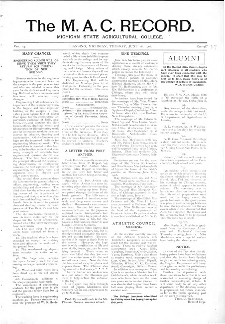 The M.A.C. record. Vol. 13 no. 37 (1908 June 16)