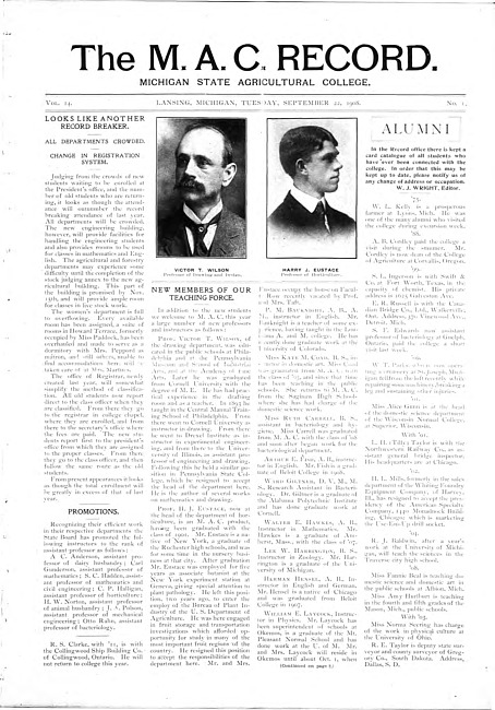 The M.A.C. record. Vol. 14 no. 1 (1908 September 22)