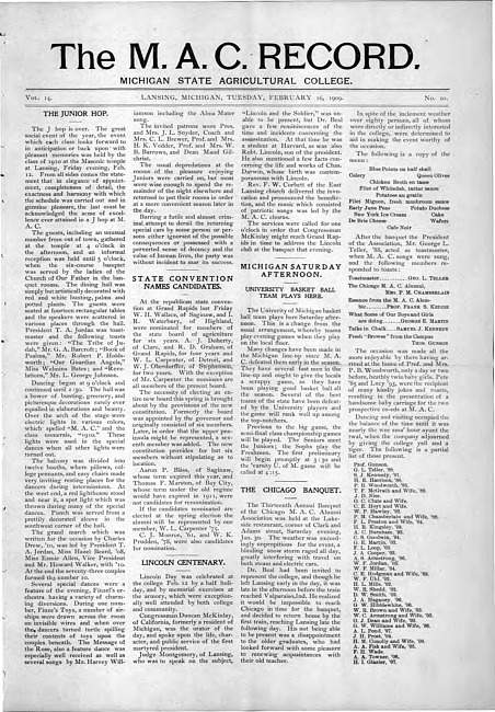 The M.A.C. record. Vol. 14 no. 20 (1909 February 16)