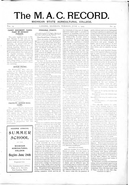 The M.A.C. record. Vol. 14 no. 34 (1909 June 1)