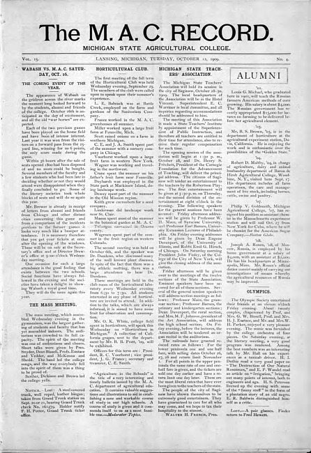 The M.A.C. record. Vol. 15 no. 4 (1909 October 12)