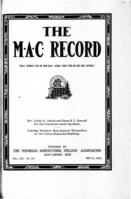 Text (1933)Part of M.A.C. Record (Serial 48)Michigan State College record. Vol. 40 no. 9 (1935 May)