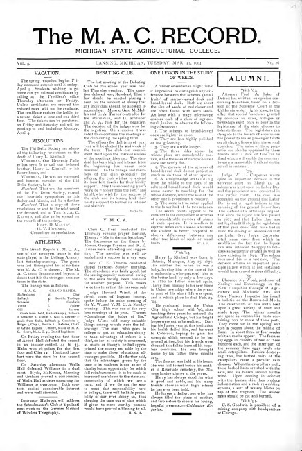Michigan State College record. Vol. 38 no. 7-8 (1933 March-April)