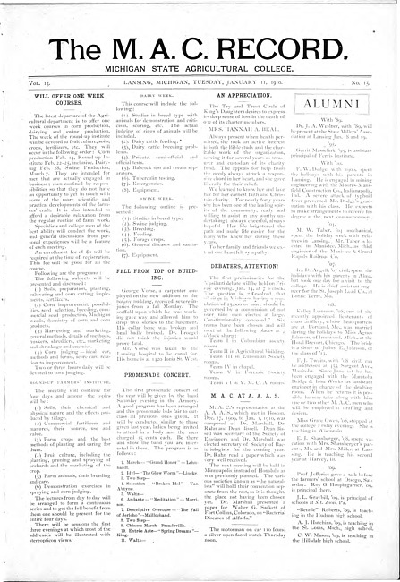 Text (1931)Part of M.A.C. Record (Serial 48)Michigan State College record. Vol. 41 no. 4 (1936 July)