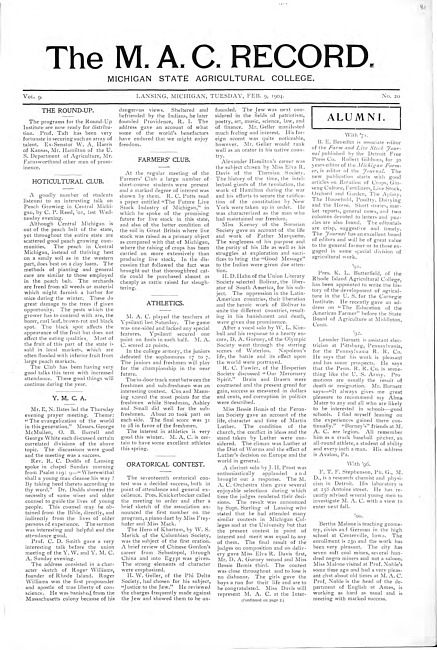 The M.A.C. record. Vol. 9 no. 20 (1904 February 9)