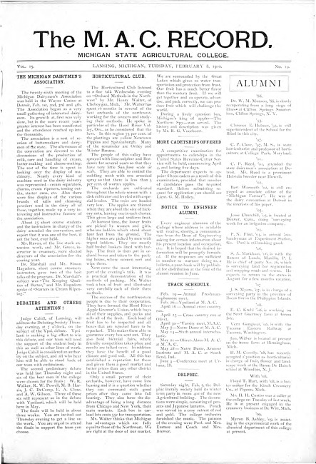 The M.A.C. record. Vol. 15 no. 19 (1910 February 8)