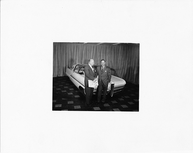 - 1956 Packard Predictor, two men standing at front of carStill Image (1956)Part of Making of Modern Michigan